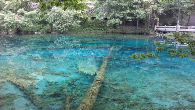 下午,树正沟(犀牛海—老虎海—树正群海—火花海)此路段共有两条栈道,一条沿公路而建,一条依山而建,强烈建议走依山而建的栈道,推荐理由依旧是没有游客,沿公路而建的栈道是旅行社的最爱,人群的浩浩荡荡,接踵摩肩,各种踩脚啊,深深表示桑不起。此路段全程步行游览,慢悠悠的拍照加戏水,大约需要两个小时,行至火花海后,本来后面应该还有双龙海和盆景滩的,可惜,栈道显示正在维护,禁止通行,我们只好绕到了那条人群浩浩荡荡,接踵摩肩,各种踩脚的公路栈道,粗略的拍了几张照片后,打道回寨,取行李,各种不舍的出沟啦!