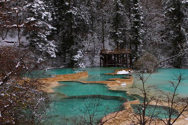 争艳池面积20000平方米,由658个彩池组成,海拔3400米,是黄龙沟第二大彩池群。