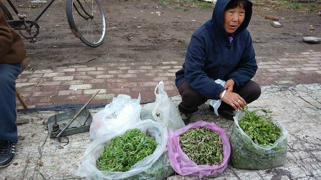 早市上 都是新鲜的蔬菜 瓜果 有的还带着露水