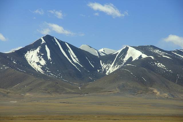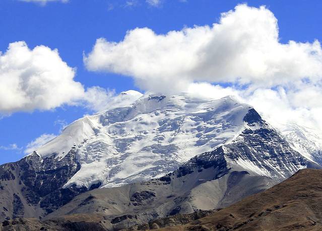 唐古拉山脉的这个区域(拉各丹冬峰周围)有20余座海拔6000米以上的雪峰,形成了唐古拉山脉最大的高峰群,峰群南北长约50公里,东西宽约30公里。上图的雪峰即为其中的一座。