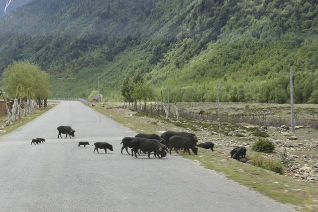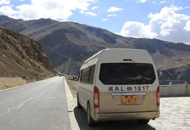早上6点整,扎西准时来到宾馆门口,我们老俩口率先上车,坐在驾驶员后面第一排,位置很宽敞。一会又上来2个小伙子。扎西将车开到另一个地方,呼啦一下又上来8个。一车含司机共13人。