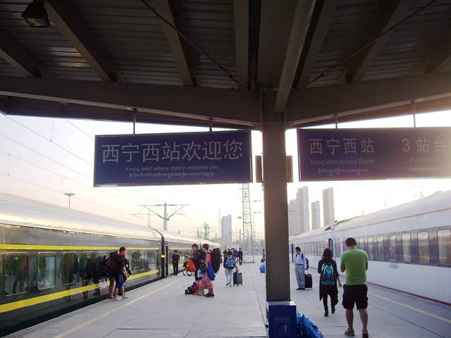 西宁西站3站台,我们在这里换乘高原列车。站台两边分别停着两列列车,这边从4号车厢下来,那边对着的也是4号车厢,几步路就上了高原列车。卧铺号也是完全对应的,依旧“对号入座”。