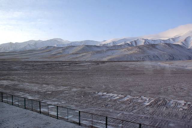 火车从格尔木南行30多公里,就驶离柴达木盆地,进入昆仑山脉。