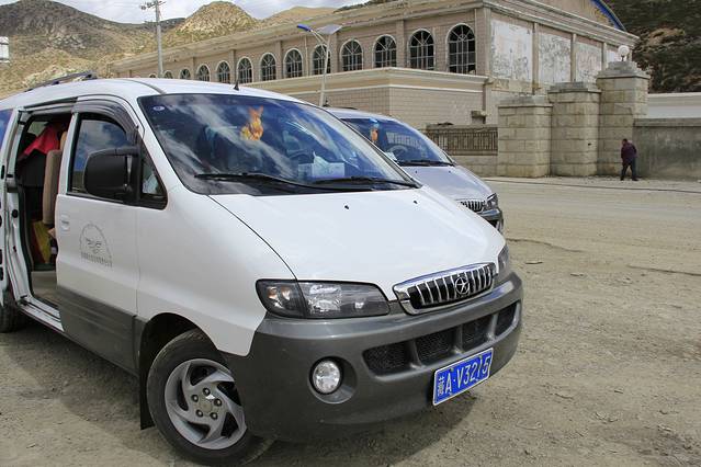 今天有些失策:8点的班车就剩最后2张票了,我们上车后只能坐最后一排,饱受颠簸。今天是辆金杯面包车,底盘很差劲,几乎没有防震功能,把我们颠得够呛。