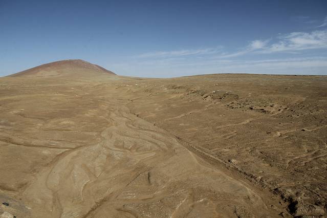 这里人烟罕至,似乎“没有生命迹象”——看不到植物,更看不到动物。突然,列车与一辆停着的“和谐号”工程车插肩而过,让我心头一震:还是人厉害!