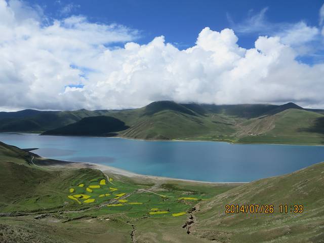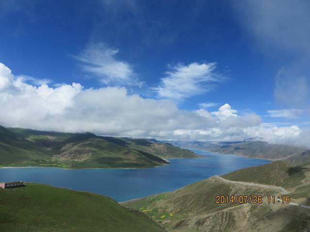7月26日上午去了羊卓雍湖,又是翻越了高山,一路上行驶在云中。我们到达观景台的时候,羊湖仍然犹抱琵琶半遮面,一直躲在云彩后面,刚刚露出一点点来又被云彩遮住。中间还有点小插曲,当我们开车离开观景台时,有一辆车还被景区藏民拦住,让我们买票,可是我们明明什么都没看到,周旋了有半小时,最后我们打110才让我们离开。。。所以如果在景区被强制消费或者受到威胁,一定要打110和当地旅游局电话,管用!