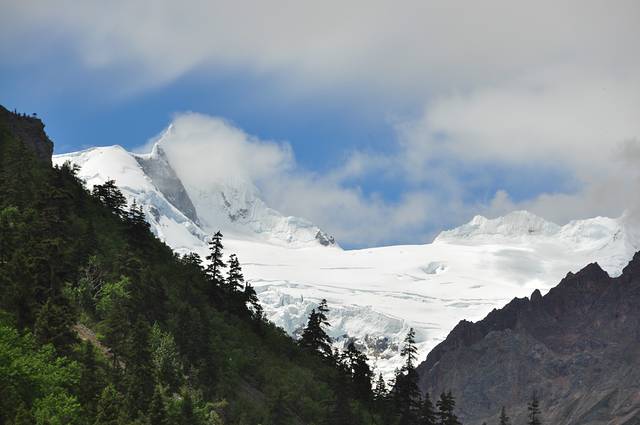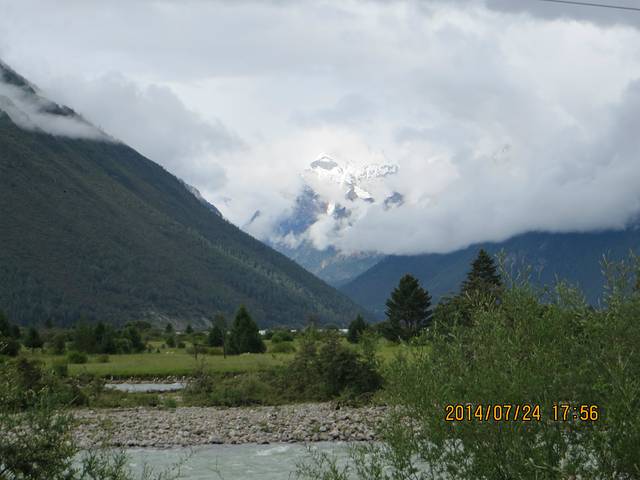 离开然乌湖途径米堆冰山,这次没有进去,只在远处望了一眼,天气很给力,雪山顶都露了出来。