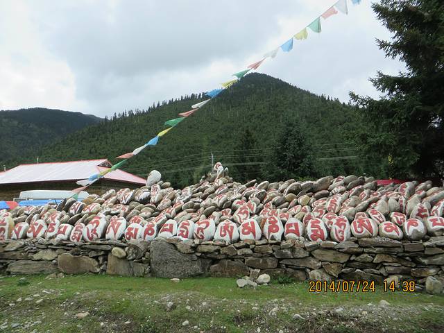 两点半左右开始往结巴村走(结巴村在藏语里面其实是皇室村贵族村的意思哦),路上经过一个很大的玛尼堆,玛尼堆周围还有一圈转经筒,我们都下车围着转经筒顺时针转了一圈给亲人朋友祈福,我相信在幸福的人周围的人一定也会是幸福的!