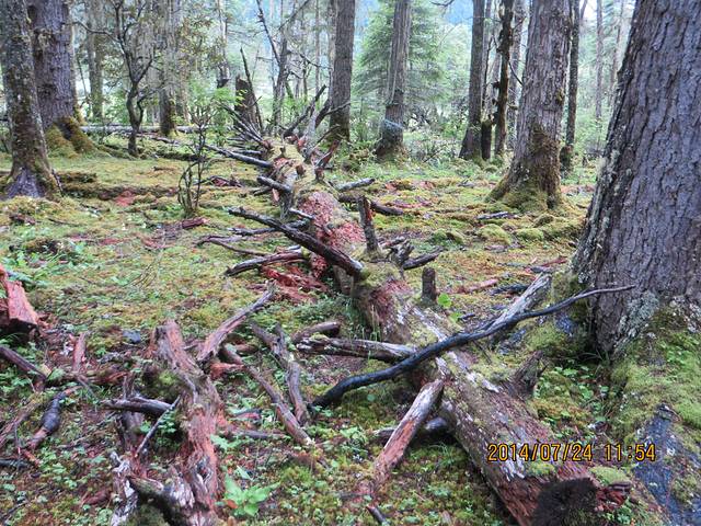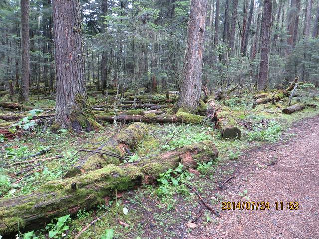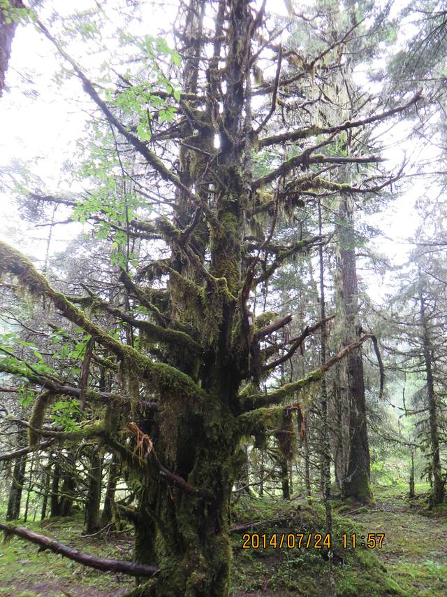 湿湿的草地,高耸入天的树木,不知名的菌类,像极了电影阿凡达里面那个森林里面的树上垂下来的一条条苔藓,还有被砍断的参差不齐的长满苔藓的木桩,拥抱大自然,即使湿了鞋袜。