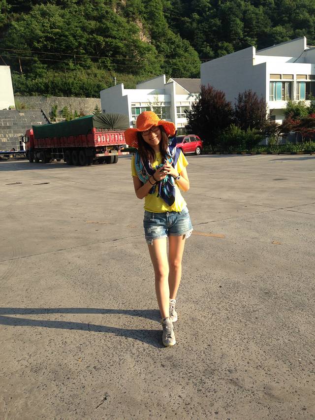 马路上真的很久才有一辆车啊!尽情的拍照吧!