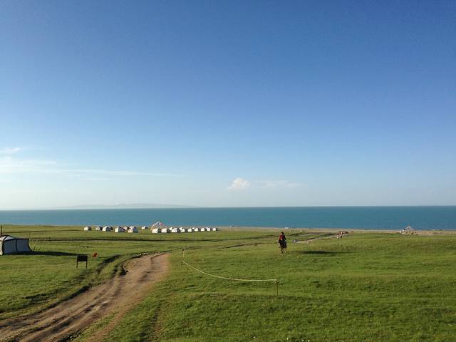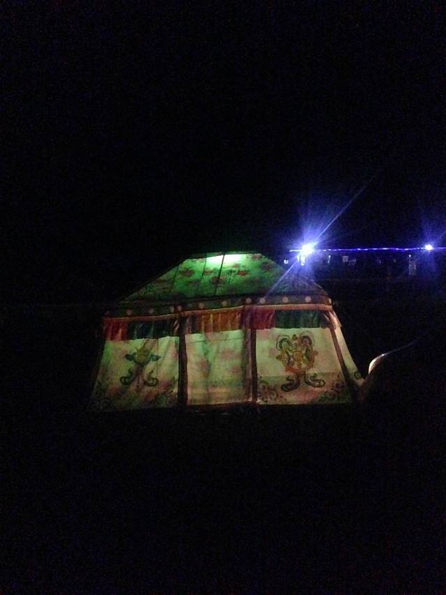 晚上七点到达青海湖黑马河,住在湖边的帐篷里,晚上我们吃的当地特色的烤全羊。天黑以后在老板的帮助下我们点燃了篝火,邀请周边住宿的旅客和我们一起享受这个安静而浪漫的夜晚。最开始我们放的藏歌,大家一起围圈圈手拉手跳藏舞,可是好像大家都不太会哎,于是不知道是谁把音乐换成了酒吧的那种舞曲,我的天气氛都搞嗨了,不过一点都不浪漫,最后我偷偷的又把快歌换成了抒情缓慢的情歌,好像大家还比较享受,都一对一对的随着音乐慢慢的晃动。毕竟有这么好的星光,这么温暖的篝火,这么柔软的草地,看着人家慢慢的跳舞,听着自己喜欢的歌曲,幸福感再一次爆棚!