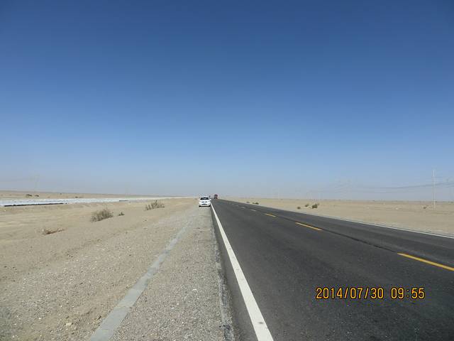 上午继续穿行109国道,经过一片像戈壁滩沙漠的地方,这才是无人区的样子,让人感到绝望,每颗植物抢据几平方米甚至更多的地方汲取水分。茫茫沙漠看不到边缘。