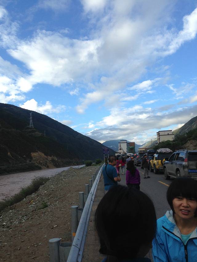 终于等到七点半的时候,车辆开始挪动,但是速度比乌龟还慢!我们忍不住下车往大桥方向走去,走了近二十分钟,终于走到桥头,原来通麦大桥只能单车同行,每次只能有一辆车在桥上。。。看样子我们要上桥得等到十点了。。好无奈,还有200里路要赶,眼看天就黑了。。。