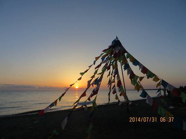 7-31昨晚穿衣服包着睡袋睡得,今早一醒直接走出帐篷看日出去了,看到啦青海湖的日出!