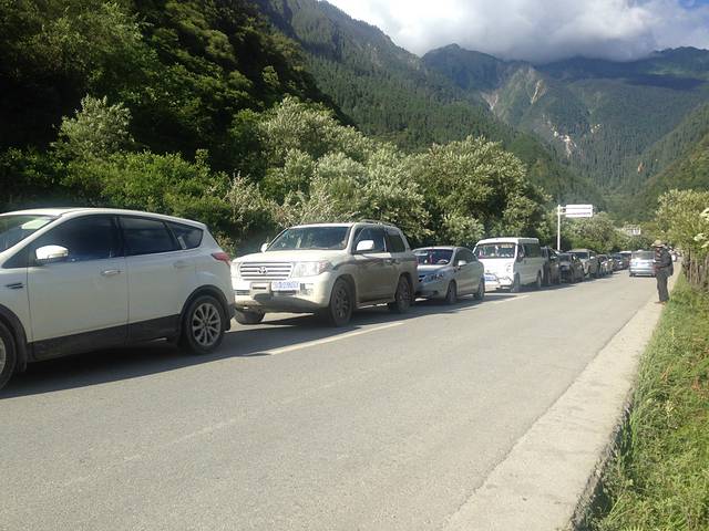 中午在波密县吃的午饭,下午赶往鲁朗,大约四点左右到达通脉大桥,就遇到了单向放行。听已经在这等候多时的车友说从下午两点开始往天险方向的车辆就开始排队了,可能要七点才能放行。