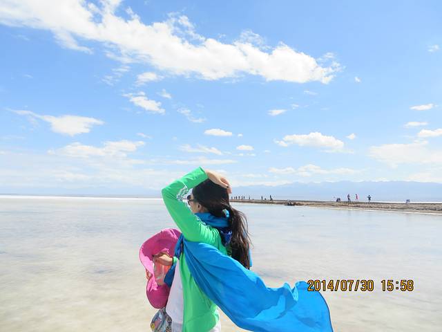 现在,我却赤脚站在盐湖上,虽然没有别人照片里的好看,但也有种梦想成真的感觉,小小的愿望,有时真的很容易满足,很容易幸福,关键是要去行动!