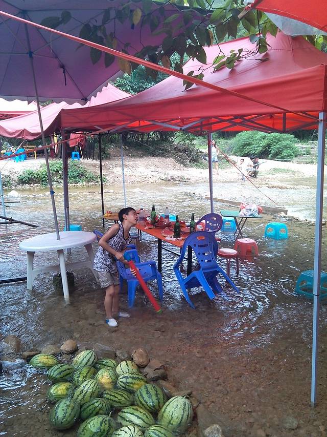 最有特色的就是座在水上吃烧烤,水很冰。