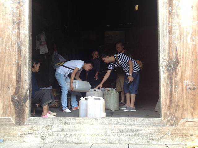 在出游的前晚我们在烧烤店认识了一名布依的实习导游,今天他带我们买了“水韵樟江”的票(送小七孔景区票)。还带我们到寨上买了当地人自做的米酒(非店内销售的),又便宜又好。4/斤左右