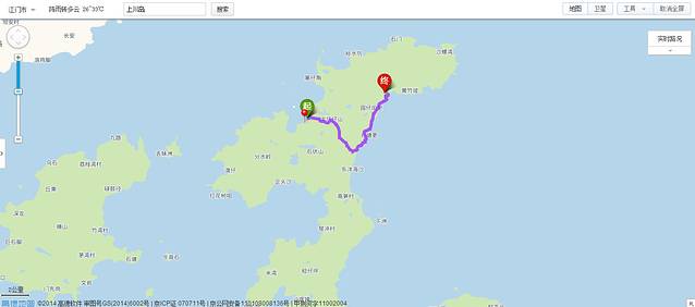 (注:图中红色标记点为登岛点:三洲港居民区,也是我们找到廉价旅馆的地方)