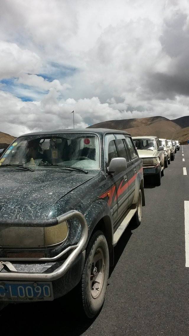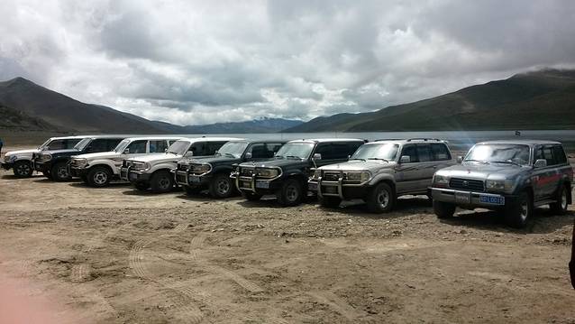 庞大车队的部分车辆,在羊卓雍错边整齐列队,信心满满!