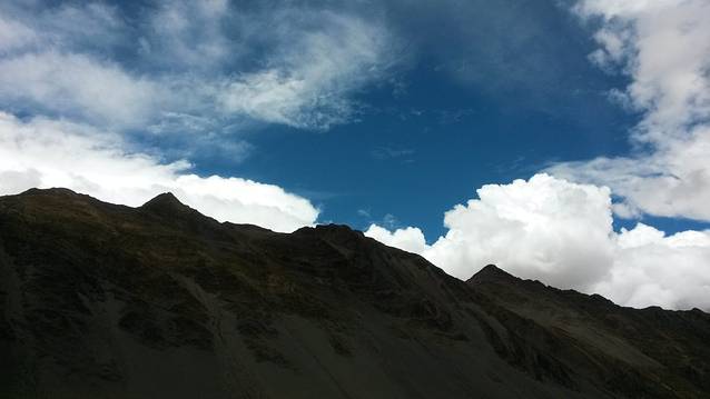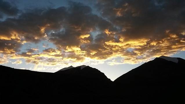 天色还不是很晚,距离我们今晚的住宿地还有一段距离,看看远处低压的云层,还是继续赶路吧!