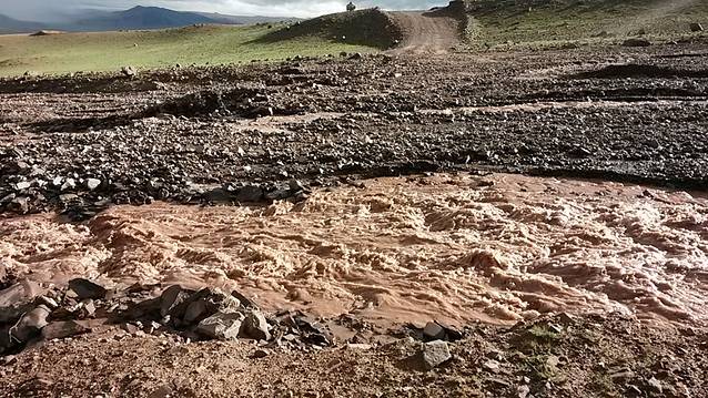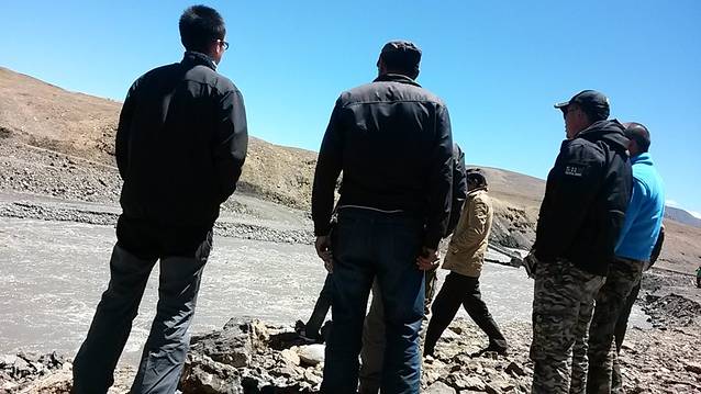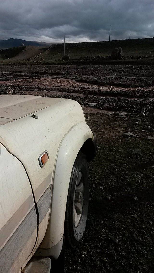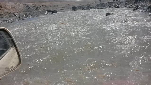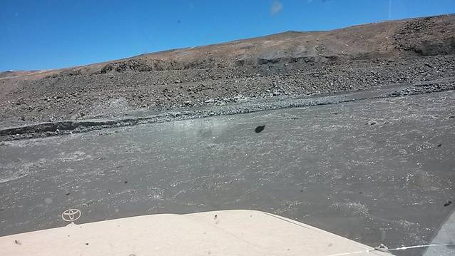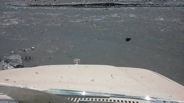 今晚将要夜宿素有“世界第三极”之称的普若冈日冰川脚下。由于前一天晚上的雨水,我们到达保护区的时候通向冰川的桥已经被冲毁,为了能近距离观赏难得一见的自然奇观,领队大熊破釜沉舟,开着满载5个人和满满后备箱行李的丰田4500向对岸冲过去!哪知冰川融水太冲沛、水流太急、河水太深,刚跋涉至河中央车身就被冲刷得失去了重心!冰冷的河水灌了几乎半车!幸好入水前在车后挂了钢索,岸上众司机师傅手忙脚乱把我们拉上了岸。。。。万幸的是,车子发动机没有进水,不然真不知下面的路该怎么继续。。。。世界第三极,难道真的“只可远观而不可亵玩焉”??