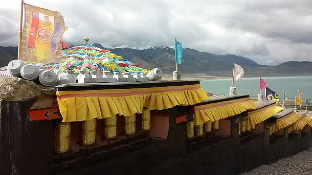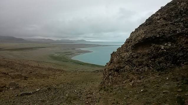 当惹雍措与远处的达尔果雪山相依相偎,同是苯教圣地
