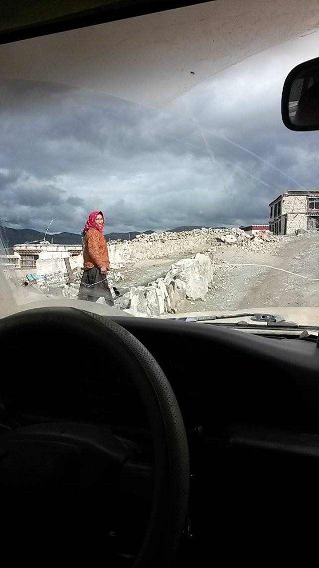 进入珠峰保护区的大门后,就一路碎石路面,颠簸+烟尘,估计有70多公里