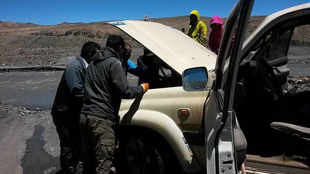 司机师傅们赶紧抢先检查爱车状况,要知道在高海拔地区失去了座驾将寸步难行