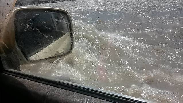 走到河中央水位已经到达车窗口,门缝也开始进水。。。。