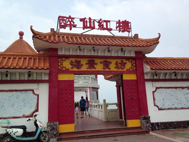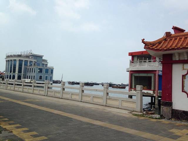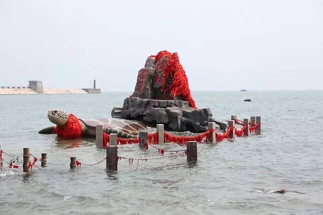 团友陆续回来,时间也接近了中午,本以为可以直接去吃午饭,结果组织者为了保证先前承诺,还是决定沿路返回酒店附近景区南迈渔村观景。烈日当空,又刚好丫丫玩累了在车上睡觉,于是我们放弃了去南迈渔村拍照的想法,就近在车子附近等待团友回来,结果没想到和我们想法的人还是挺多的,路边的小卖部的休息椅一下子都让我们给坐满了。听说景区主要是有个海枯石烂的景点,不过听去看了的团友们说路程还真是不好走,去的时候还可以走海滩边过去看,回来时候涨潮了只能借助旁边的小卖部的路才能走回来。因此只能借团友的一张照片供观赏咯。
