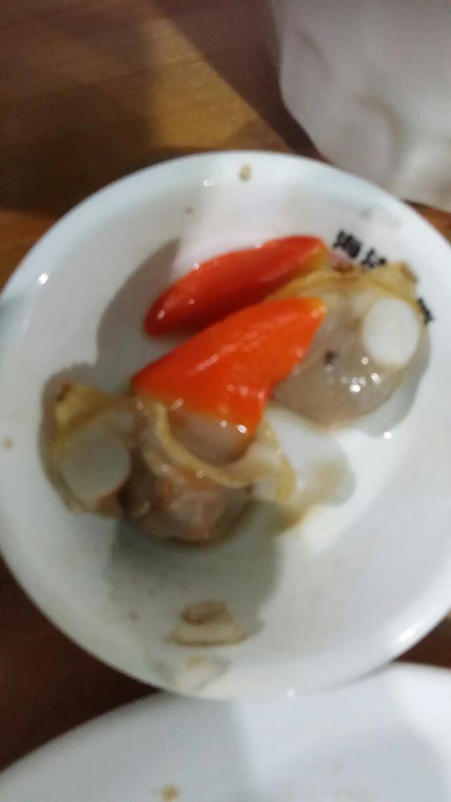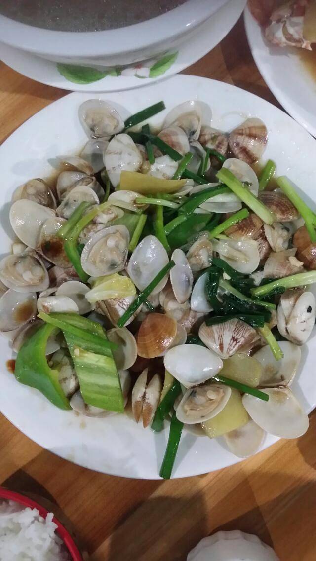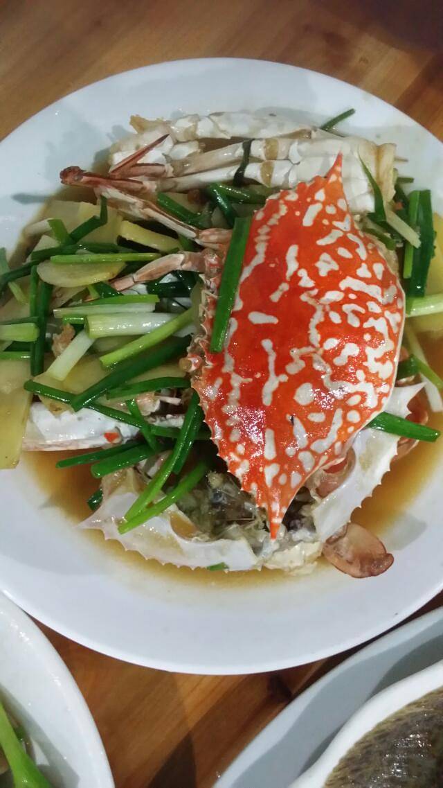 疯够玩够,肚子也饿了,回到房间清洗完毕后出发吃晚餐咯!·本来有很多打算,先去老街逛逛,吃吃海鲜,再回到侨港美食一条街吃点小吃,喝碗糖水,结果出门的几滴小雨把我们的计划彻底打乱,还好出发前我们制订有第二套方案,就是在酒店附近吃,找了一家在大众点评网上人气和评价都颇高的好食来小排档,于是果断回酒店取了雨伞出发了,因为离酒店较近,我们决定步行前往,顺便可以散散步,结果一路上还真遇到了之前在攻略上介绍的热情的当地骑三轮车车夫,他们说我们附近的餐馆都是吃外地人的,只要我们花五元钱就可以带我们到当地人吃的海鲜餐馆用餐,我们当然不会上当,都一一婉言谢绝了。由于网上说的地址就在我们路口的路海大酒店附近,于是我们走到路口后就想当然的朝着海边走去,结果没找到吃的地方,却意外看到了难得一见而海边城市常见的雷电交加,那闪电从天边一闪划到海里,感觉天空就象被锋利的斧子劈了一道一样,真是壮观美丽,本想拍照留念,可是胆小的我又怕被雷公劈对,因此还是打消了拍照的念头,赶紧趁着暴风雨来临前找到吃饭的地方,结果往回走不到一百米就看到了,虽然地方不大,但是确实和网上评论一样,挺多本地人带朋友过来吃,BB火速点了几样菜,然后坐等海鲜大餐,这里上菜速度还真是够快,不到十分钟已经上了第一盘菜浸花螺和第二盘菜包肉螺,因为肚子饿了,吃完收盘了才想起居然忘记拍照留念,于是只能上几张后面上的菜品了。这次海鲜餐以吃螺为主,除了上面讲的两个螺还点了本地螺,然后再点了几只蟹、多宝鱼和一碗汤、一瓶大雪碧,共计花费300元整,和三亚消费差不多。