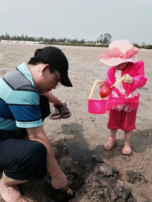 遗憾六: 没能欣赏到南迈渔村的美景;据说南迈渔村是北海人拍摄海景婚纱摄影选择的拍摄地,可想而知景色一定美不胜收,可是因为行程的临时调整,先去挖螺再去看景,刚好中午烈日当空,再加上丫丫午休还未清醒,因此我们没有随团一起去看景,只是留下原地等候,