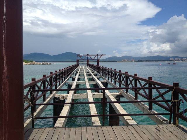 早上一起来就出发到蜈支洲岛,到的时候下着大雨,买完票等上船时就又没雨了,到了岛上的时候已经是大太阳了,变化太快了哈哈。