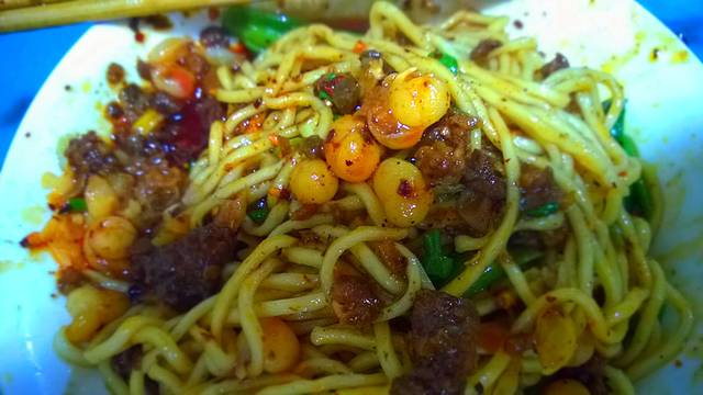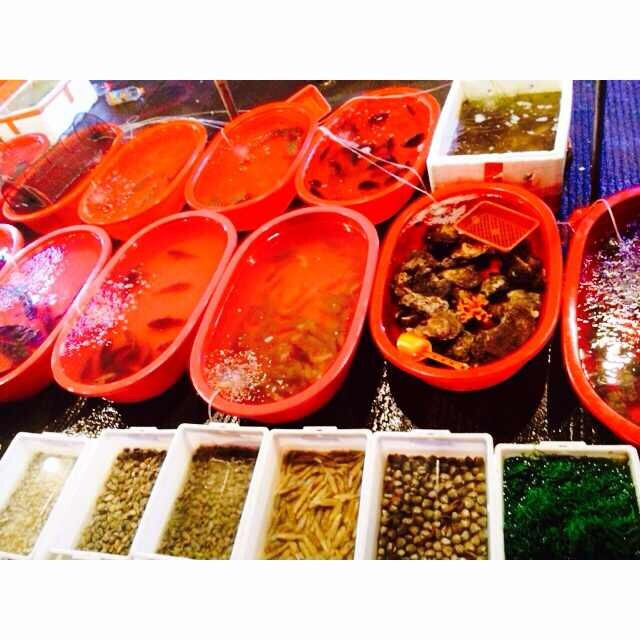 解放碑上有小吃街,生意都很不错。重庆的朋友带我去吃了酸辣粉,汤圆,和号称重庆小面前5强的豌杂面以及西施火山石烤鱿鱼(麻辣味儿和蒜泥味儿的不错);