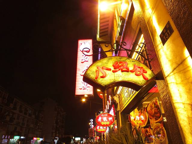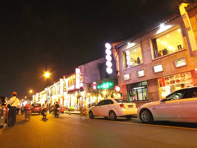 这里估计我是不太想吐槽它了,位置应该快到杭州的边缘地带了。打车过去司机居然说不认识路,把我们扔在路口,后来自己问了,走了15分钟才到。其实也是因为人太少他怕出来没人打车吧。名字是取的蛮好听的,但是真的是用欠开发来形容。里面唯一看的过去的是死飞店。出来的路上,有个台湾美食城,但我们也是没有去吃呢,嘻嘻~我们决定去高银街尝尝杭州本土风味儿。
