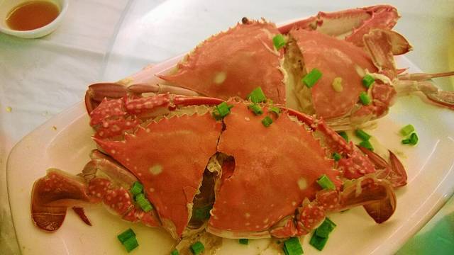 想起了拨打东极旅游中心电话的彩铃:南极北极太阳远,不如到东极转一圈,也是醉了。下车之后,遇到了同样是一个人的刚刚高中毕业的妹纸,涵涵。下车之后看到她,问:“你是一个人吗?”“是的”“那我就找个地方一起住吧。”还真是一下就互相信任起来。然后,根据司机的介绍被带到这里,入住了这边的尊享99大酒店,酒店是新开的设施设备很新,价格是178的标间但是睡觉起来发现,床单上有一坨头发顿时印象就不好了。在酒店吃的海鲜,还行,新鲜的做出来都不错吧。螃蟹和淡菜好吃。两人吃这些加一个素菜就170左右,不贵。还送了大瓶可乐。