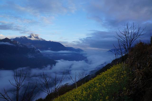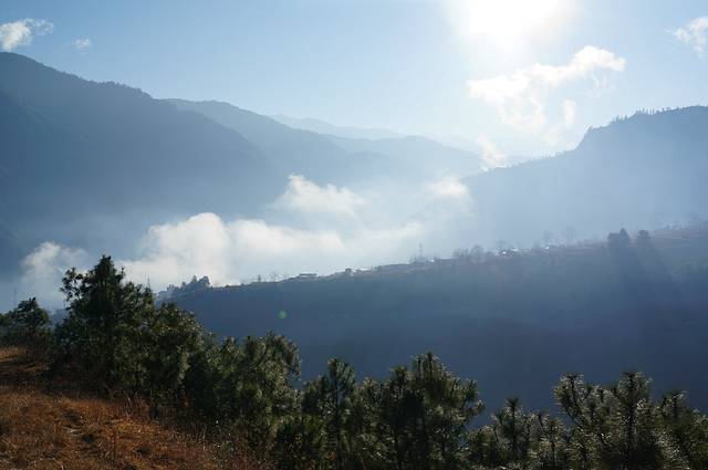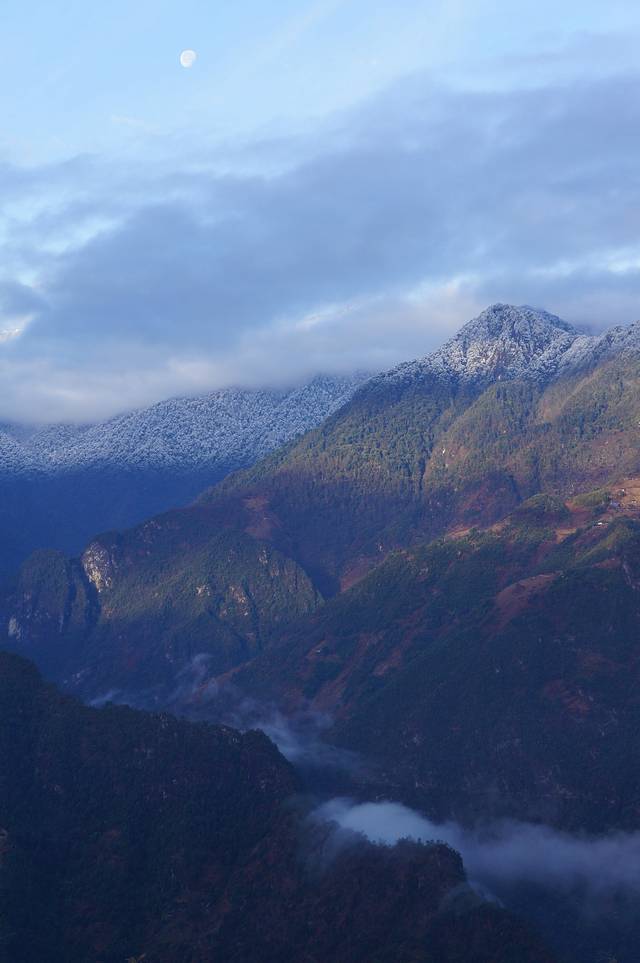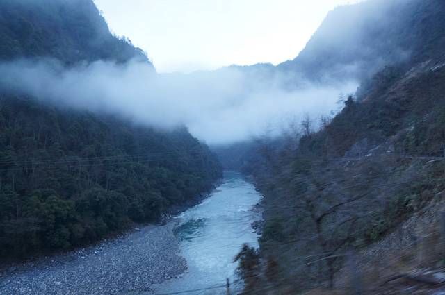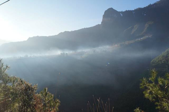 一大早坐车去贡山,正赶上晨雾慢慢地在峡谷中升起