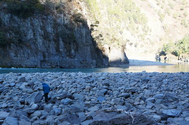在丙中洛的江滩上捡石头