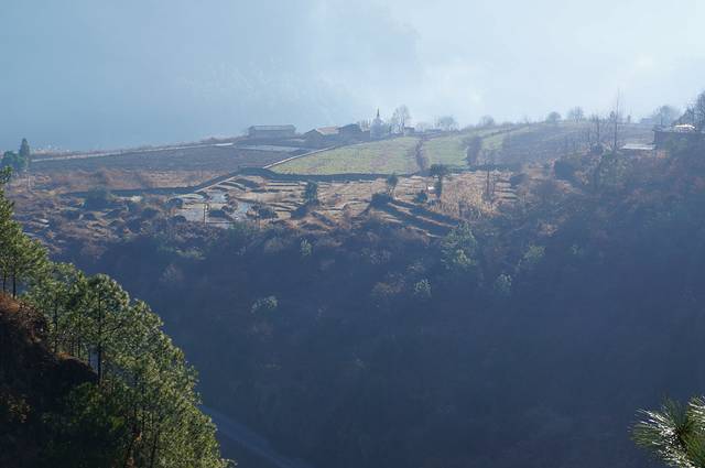 去往老姆登的山路上,回望峡谷和层层叠叠的梯田