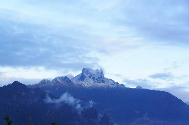 山顶气候变化万千,一夜之间,对面的皇冠峰已是白雪皑皑