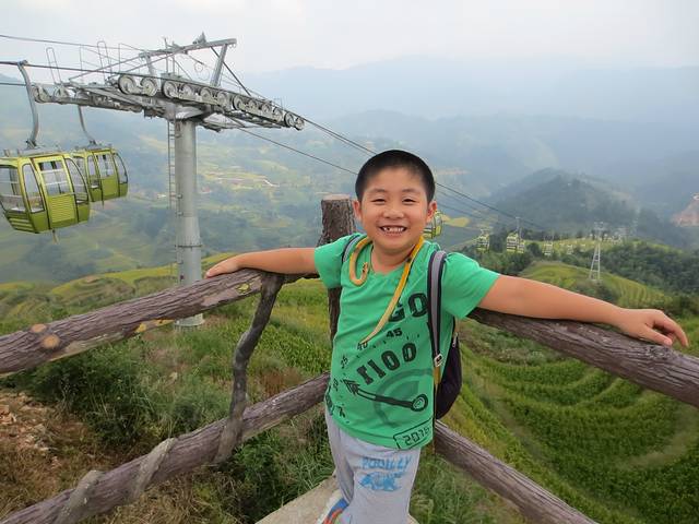路上由于塌方,塞车一个小时,幸好我们买了面包在路上吃,所以两点多到龙胜大寨梯田后我们都不饿,午餐也省了,直接去坐缆车上三号景点,然后步行下来回客栈。行李找一个村民帮我们背到“景留人客栈”,20元。