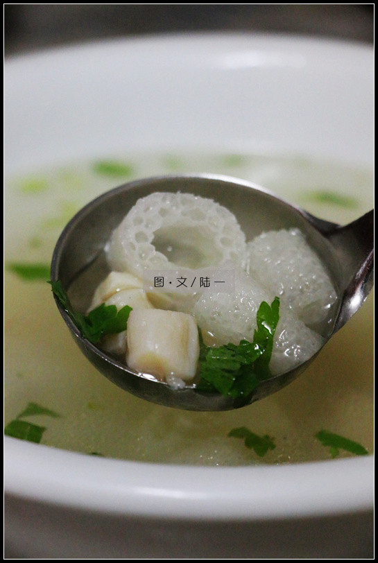 这家算得上久负盛名了!国平路的老店似乎老得不能再老了,进店看下环境及天花板都觉得应该保护起来,店的四周很安静,不过店里却异常红火,老板娘似乎收钱都已经来不急了,更不用说引导客流啥的了,整个店感觉一团乱!本想撤退,可是都来了,还是店内游走,伺机占位!潮汕的餐饮有个好习惯,后厨前移,在客人眼皮底下操作,相当透明!要了竹荪干贝汤,干贝个头很大,这种汤其实关键就是食材,跟厨师可能没多大干系!拼盘是各种粿糕的组合,金瓜粿、菜头粿、红萝卜、马蹄糕、韭菜等等,因为只有两人,所以战斗力再强,也只能打包了!其实也就是各种粿汁小吃,这几天一直如此,味蕾都快有点麻木了!不过这种店也就这样:不来觉得可惜,来了也就如此!
