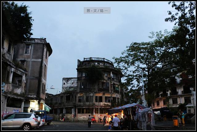 真的很小,一个八角小凉亭似乎就是她的全部!这里的建筑原汁原味,路灯暗淡,突然有种三十年代上 海老街的恍惚。
