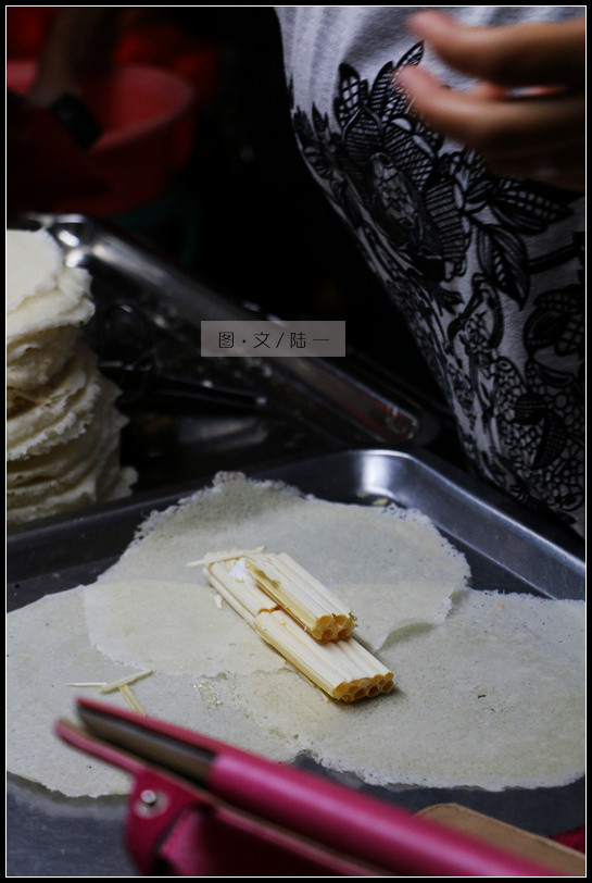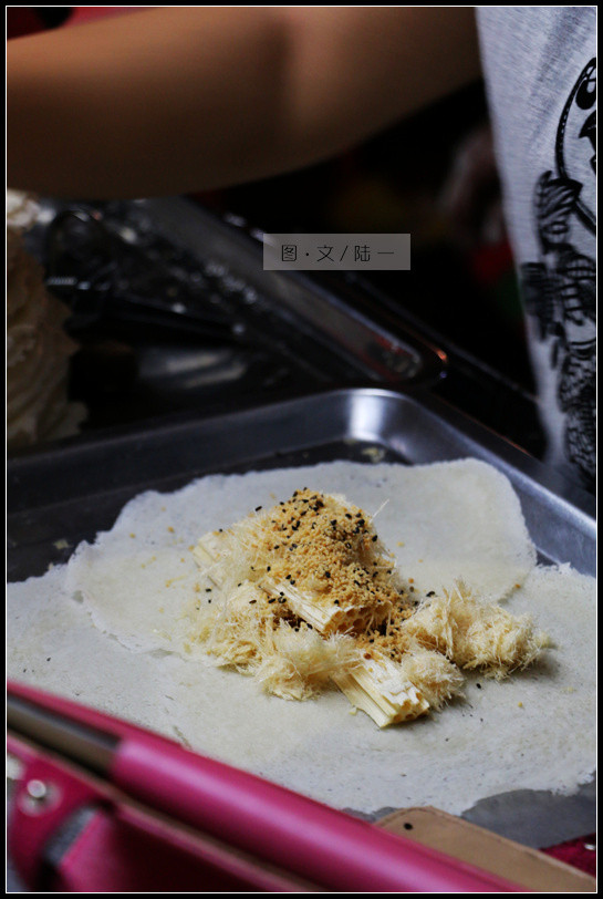 舌尖上的中国里的糖葱薄饼如今真切的出现在我面前了!本来对这种糖酥我总有点排斥,但是薄饼的软韧包裹酥脆的糖葱,加上龙须和花生粹黑芝麻的参与,一入口就显得特别的活泼有底蕴十足。这种甜蜜真的与众不同。到汕头一定要街头小摊关注一下,不宜多,但一定要品尝!
