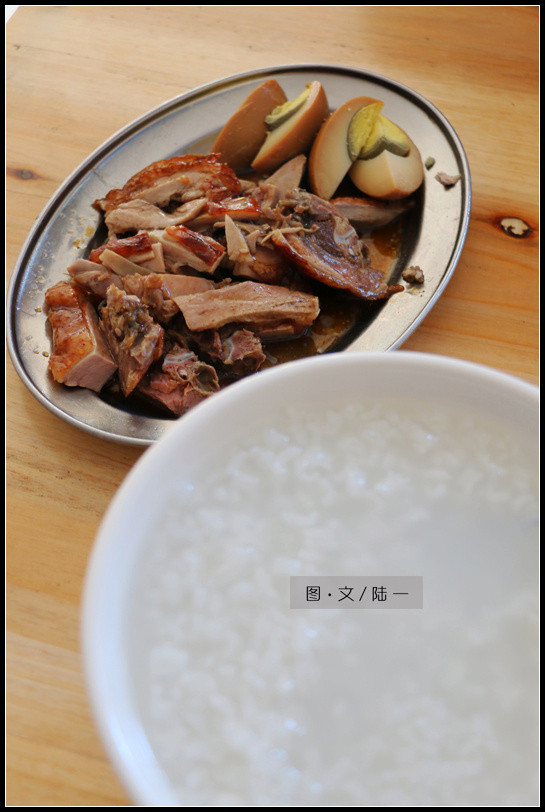 在汕头几乎看不见早餐工程的影子,早餐只能在楼下一家猪脚饭小店解决!有白粥但是太早木有咸菜,一小蝶卤鸭跟卤蛋也是不错的选择!汕头装白粥的碗可都不小!