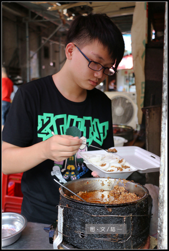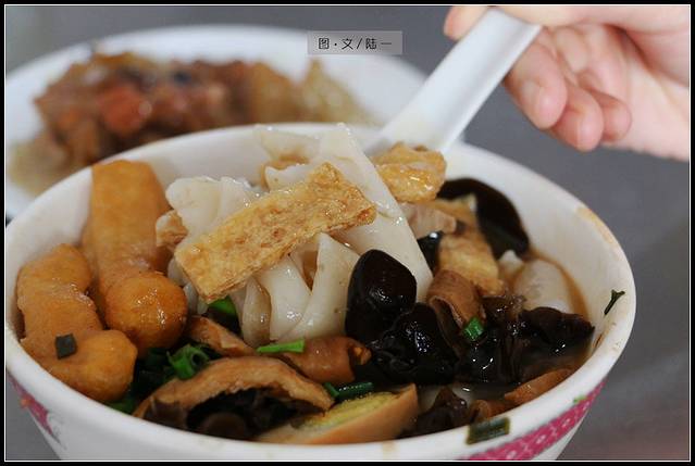 这家蔡澜有推荐!与豆花甜汤就隔着一马路。一路上偶遇几波拿着手机导航背包的人,看来网络的力量还是很强大的!鲎粿里头有虾米、三层肉、香菇丁、油葱等等,有种厦门肉粽似曾相识的味道!粿很Q,酱汁略重!粿汁内容丰富,有软烂的卤大肠、卤蛋、小油条、豆干、肉等等!味道比第一天在潮州吃的浓郁!