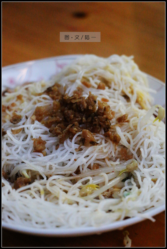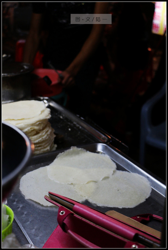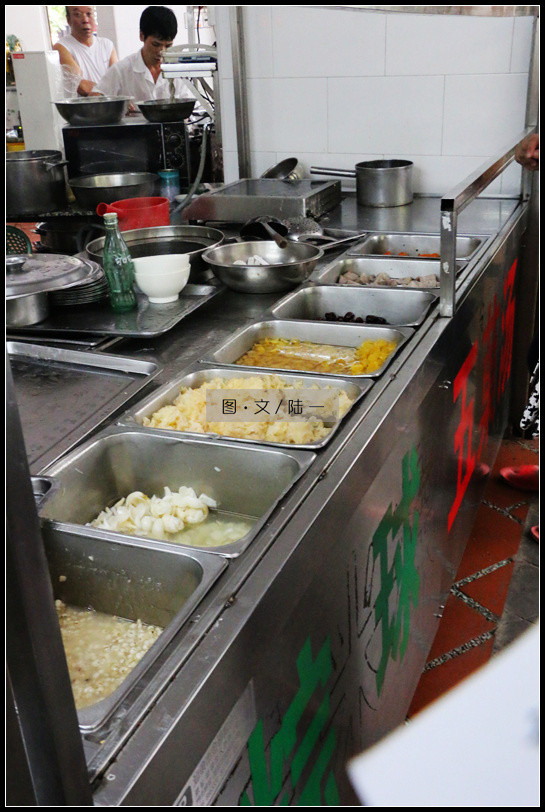 这家在红豆冰沙隔壁,没有店名,只写着蚝烙,肠粉!经营的品类也很单一,除了招牌上的两个就还有蒸粉可以选择!而且每份只要5元、6元,巨实惠!关键是老板娘人好,没得说!我们占用一张桌子只要了一份肠粉,很明显是为了等红豆冰沙的!当红豆冰排到队时,同伴喊我去帮忙,我一急马上起身离开,这时服务员跟老板娘惊讶的看着我!我顿悟,我还没付款,这种行动绝对有吃霸王餐的嫌疑!立马付款尴尬解释,然后拿了冰沙还是回到这里!老板娘依然很友好,或许她也觉得沾上冰沙屋的光了。我自己觉得不好意思了,说再消费个什么吧,可是选择面太窄,蚝烙吃过多次了,就要了蒸米粉!其实都不错,一共花了11元,突然觉得钱好大!