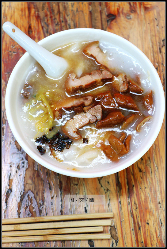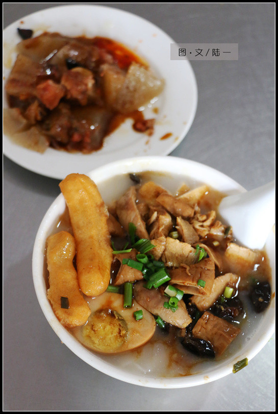 十点多才出门,准备去找点吃的,突然发现中山路这家早上开门了,昨晚7点过来已大门紧闭!看中一小块,问师傅怎么卖?师傅没回答,似乎全凭经验,随手说加一小块20元。然后再去另外一家打包白粥豆干豆芽一并到宾馆,都不知道是早餐还是午餐!