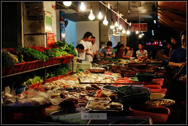 这里临近小公园老建筑区,有点时间留下的痕迹!就如同各种夜粥摊才能还原汕头夜的本色一般,你要亲身经历才能体会,看似安逸宁静的外边在夜粥摊上涌动着无比火热的热情!我觉得到汕头,不必在意是不是飘香小食、是不是榕香蚝烙……只要看到遮雨棚下人潮涌动,你就可大步向前,指着琳琅满目的海鲜,我要这、这、还有这……现场过秤,等着美食上桌!